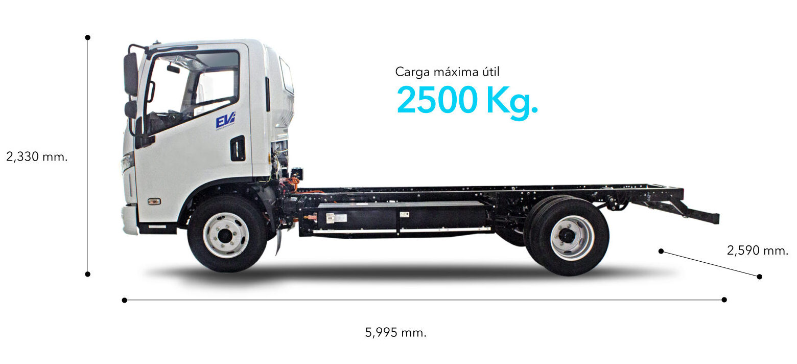 Camión 100% eléctrico, diseñado para satisfacer las demandas de logística, distribución y transporte de carga. Cuenta con una estructura versátil que permite adaptaciones múltiples como: caja seca, refrigerada, redilas o plataformas, sin comprometer su autonomía, desempeño o capacidad de carga.